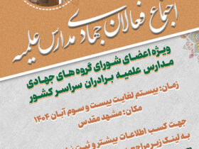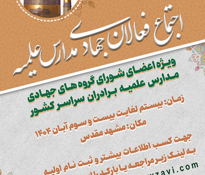 برگزاری اجتماع فعالان جهادی مدارس علمیه کشور در مشهد مقدس به گزارش روابط عمومی مدیریت گروههای جهادی، در راستای توسعه و ارتقای فعالیتهای جهادی در مدارس علمیه سراسر کشور، با هدف تقویت همافزایی و بهبود کیفیت خدمترسانی، اجتماع ویژهای برای اعضای شورای گروههای جهادی مدارس علمیه برادران برگزار میشود. این رویداد با حضور فعالان جهادی […]