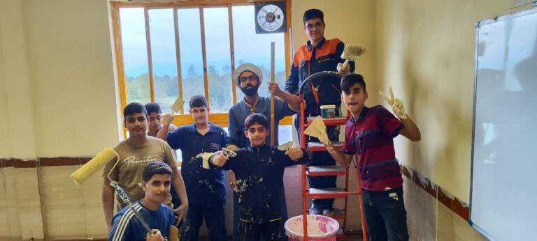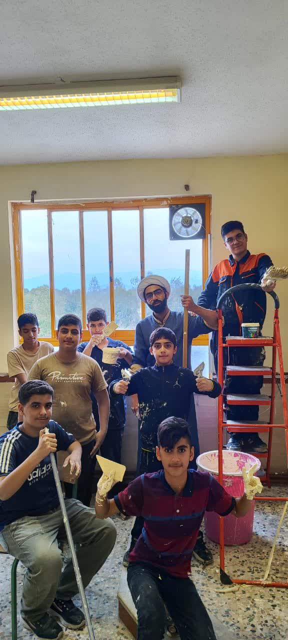 طلاب گروه جهادی شهید فخریزاده شهرستان لنگرود استان گیلان، با برگزاری اردوی جهادی اقدام به رنگآمیزی مدرسه نمودند.