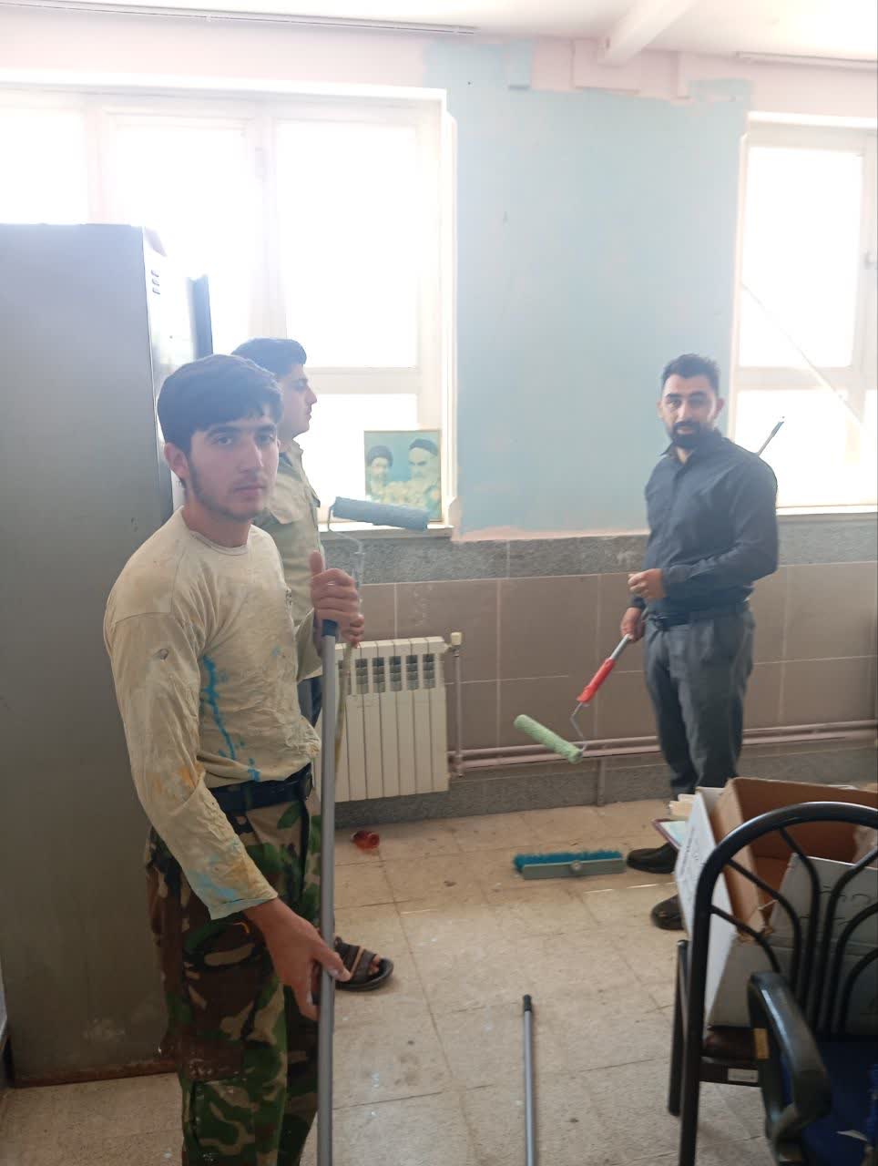 طلاب گروه جهادی عماد مغنیه اقدام به رنگآمیزی مدرسه در خراسان رضوی شهرستان زبرخان روستاهای بخش اسحاق آباد روستای جهان آباد واحمد آباد نمودند.